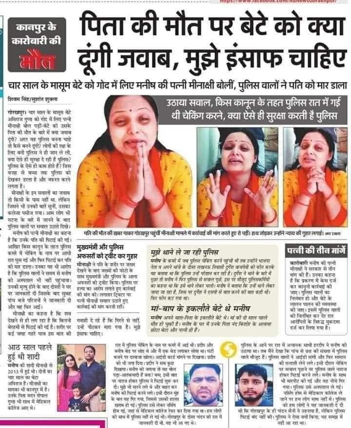 मनीष गुप्ता एक व्यापारी थे , गोरखपुर किसी काम के सिलसिले में आए थे । होटल में रुके हुए थे । होटल में पुलिस वाले आए , मनीष गुप्ता को पकड़कर इतना पीटा कि उनकी मृत्यु हो गयी ।