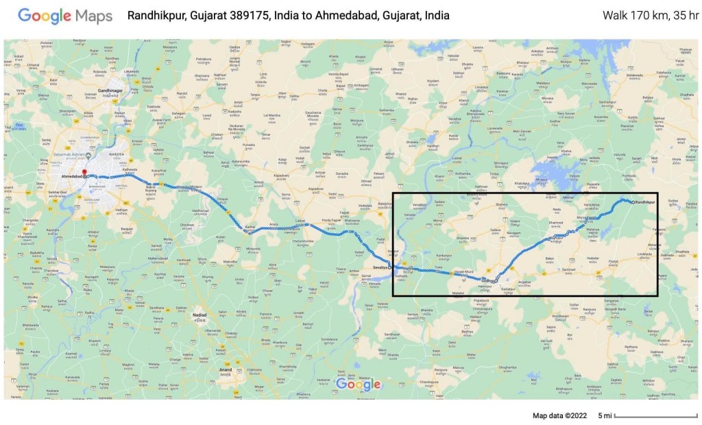 Sandeep Pandey’s march would have been a source of healing in a society marred by sectarian violence, a beacon of basic decency that one fears is fast evaporating from Indian society, and a peaceful assertion of humanity in the face of tyranny. But this was not to be. Sandeep and his companions were detained, and reports indicate that they have now been released. Their march is prohibited from passing Godhra, the one place that would have benefitted the most from such a conciliatory gesture for its victims. The march may now proceed from Sevalia towards Ahmedabad, defeating its primary intent by excluding the area (enclosed by a rectangle in the accompanying map) to which it was most relevant.